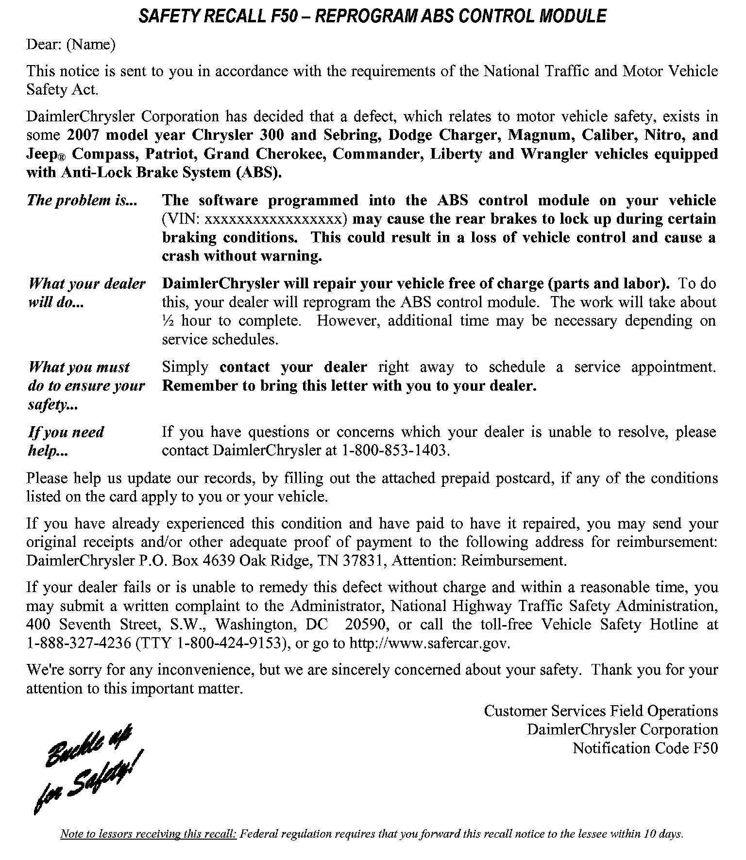 Recall - ABS Module Reprogramming