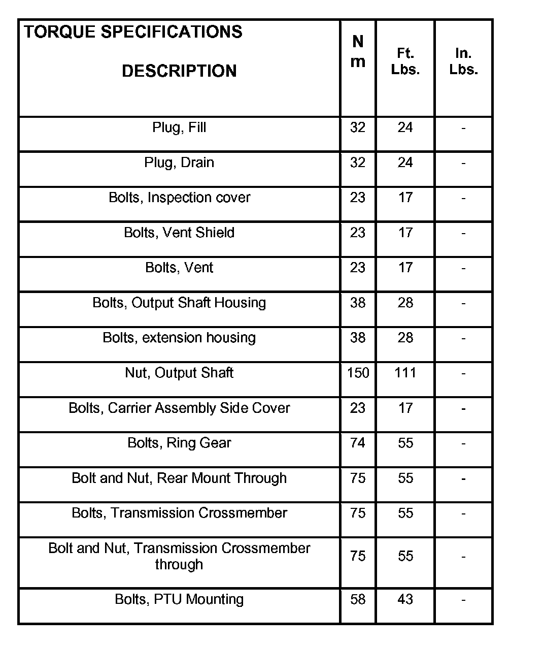 Torque Specifications:
