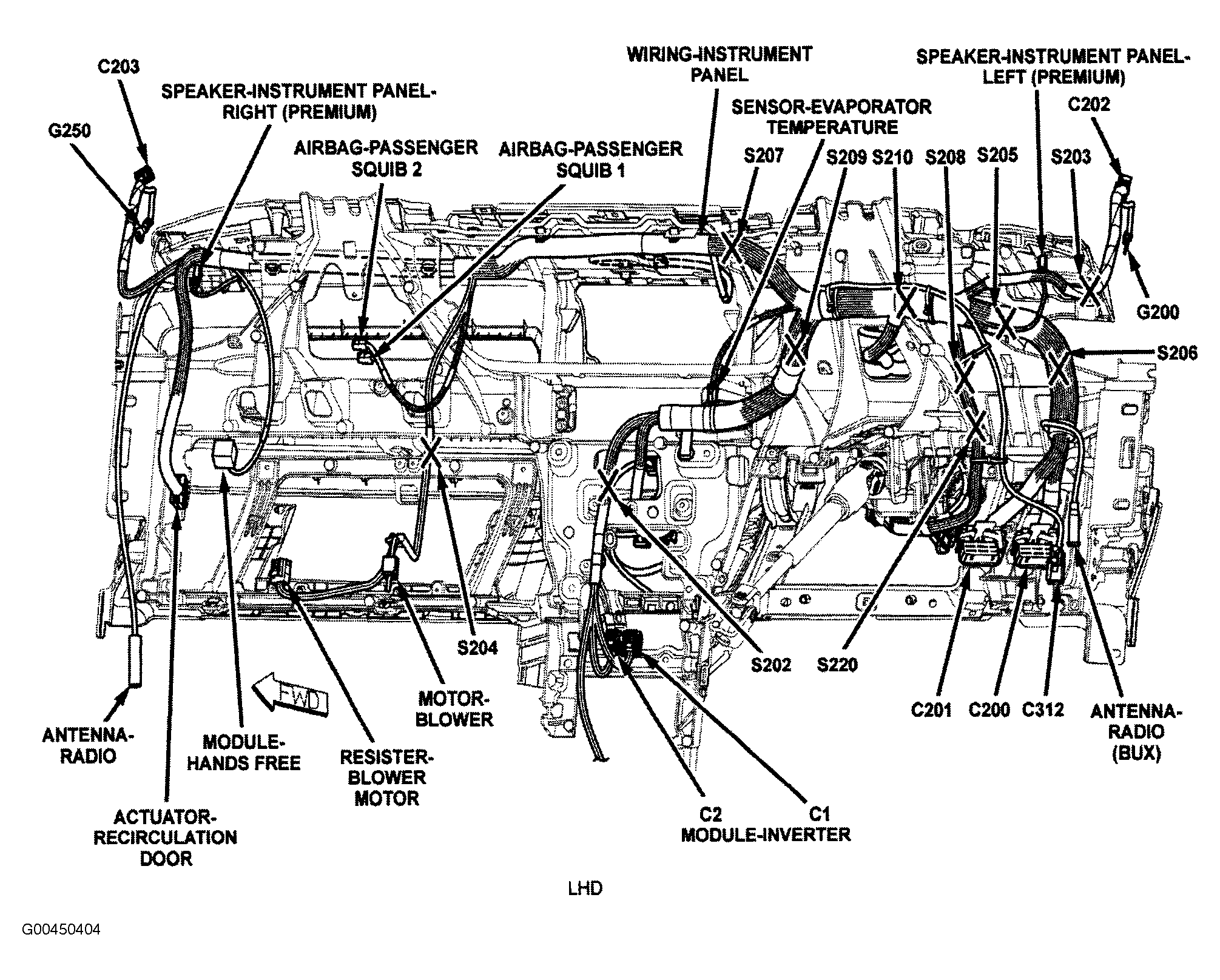| Hands Free Module | Right side of instrument panel. See Figure. |