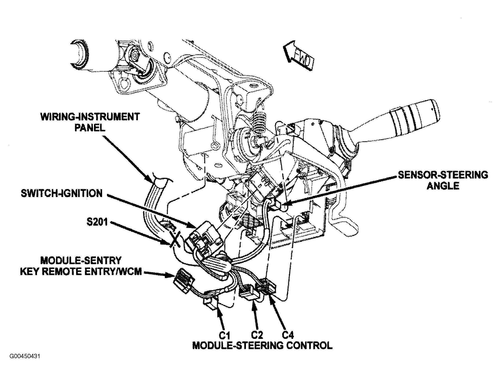 | Sentry Key Remote Entry/WCM Module | Right of steering column. See Figure. |