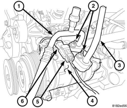 NOTE: Replacement of the refrigerant line O-ring seals and gaskets is required anytime a refrigerant line is opened. Failure to replace the rubber O-ring seals and metal gaskets could result in a refrigerant system leak.