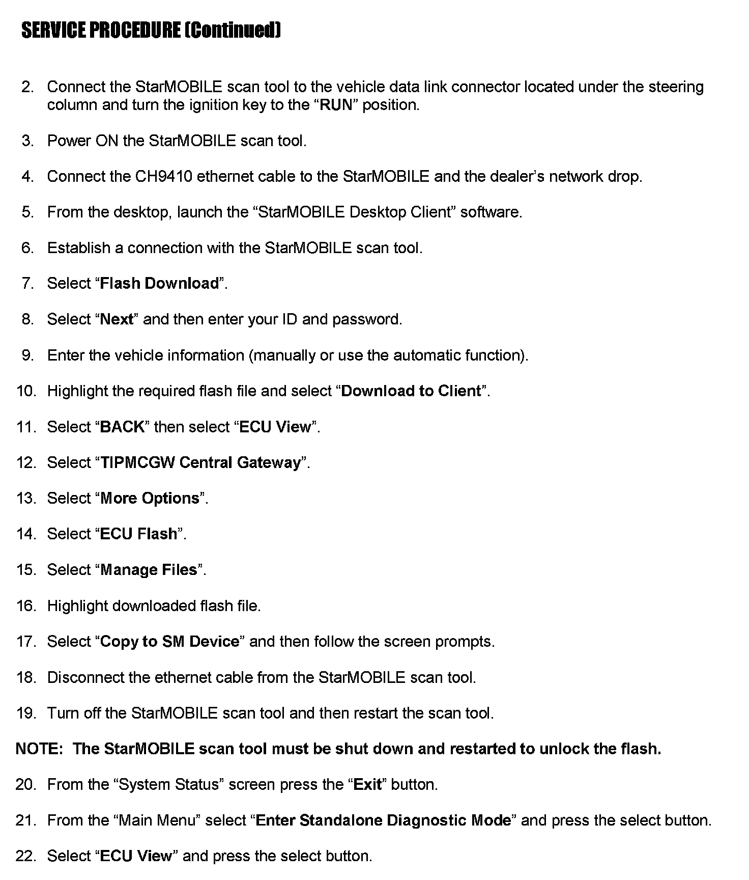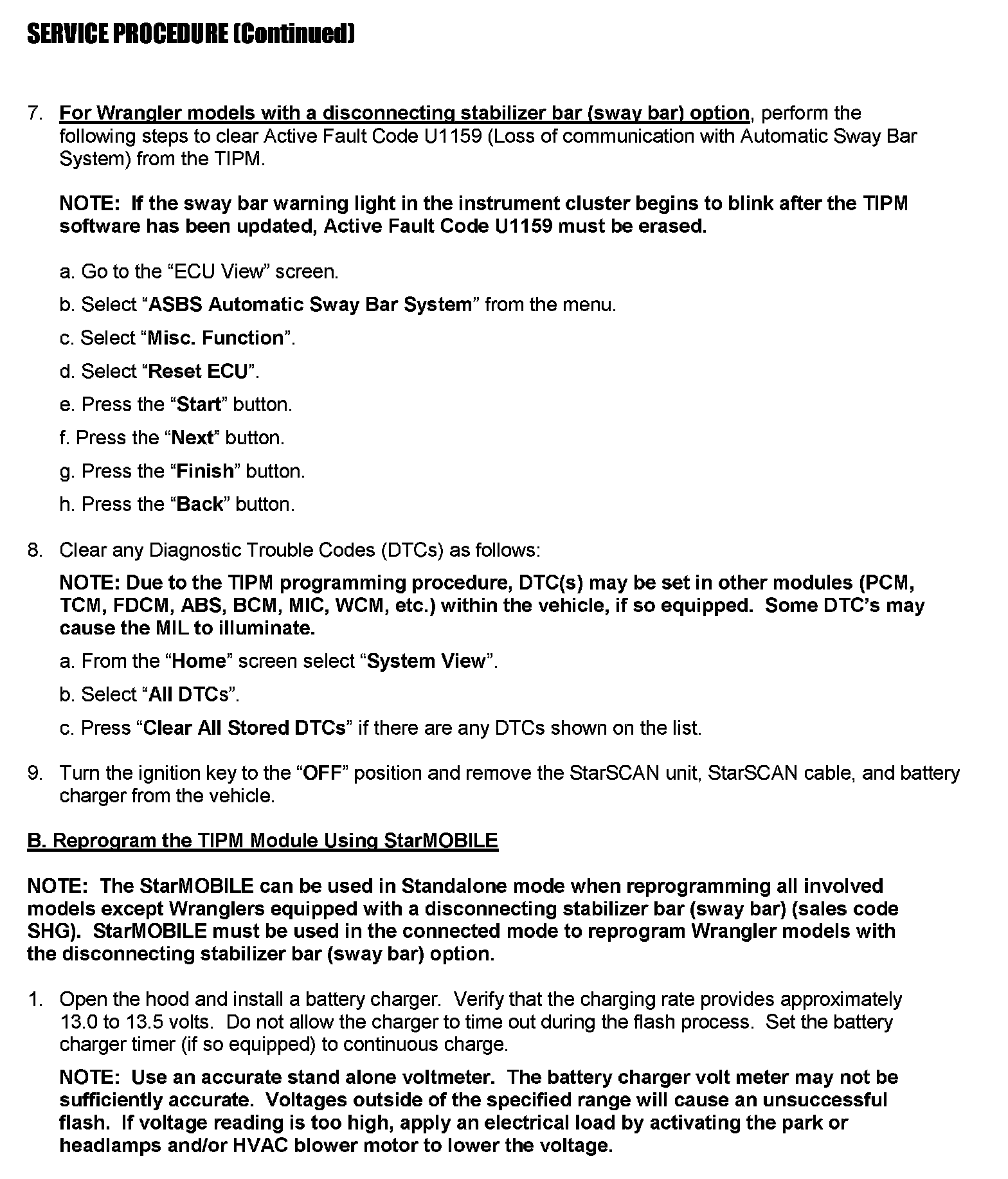Wrangler models with a disconnecting stabilizer bar (sway bar) option (sales code SHG) require additional unique steps in the flash procedure.