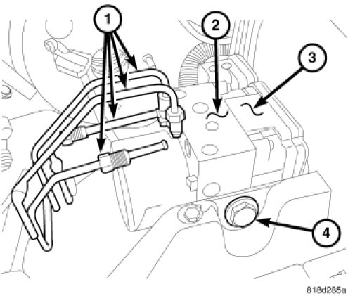 4. Install brake lines (2) to the HCU (4) and tighten to 19 Nm (170 in. lbs.).