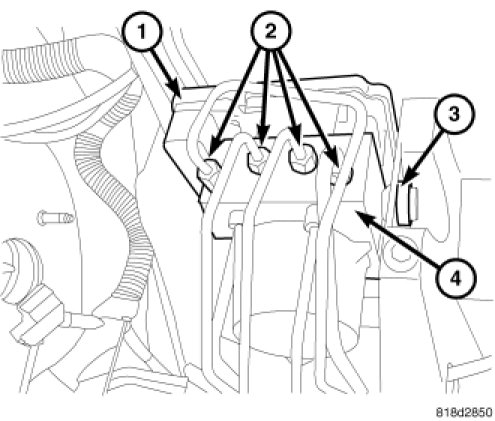 2. Install HCU/ABM (2&3) on the mounting studs (4).