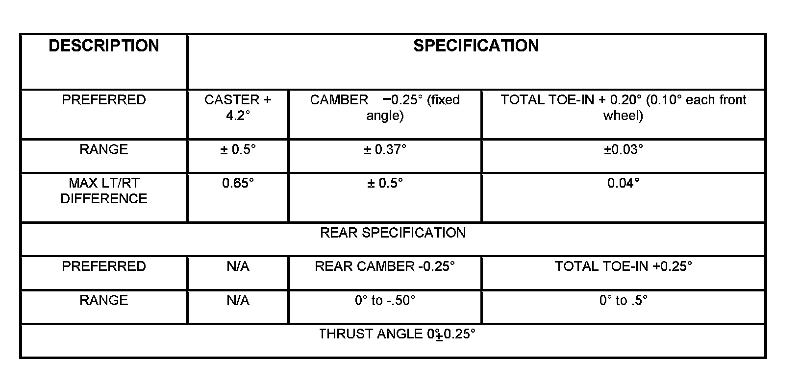 ALIGNMENT SPECIFICATIONS