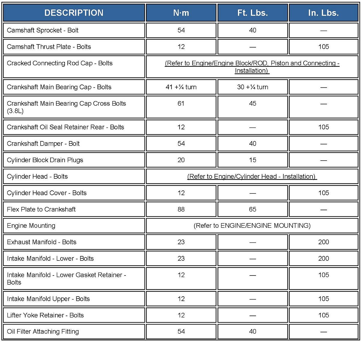 Engine Torque Specifications