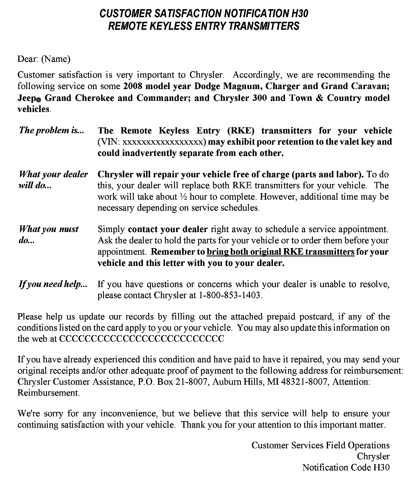 Campaign - Replacement Of Keyless Entry Transmitters