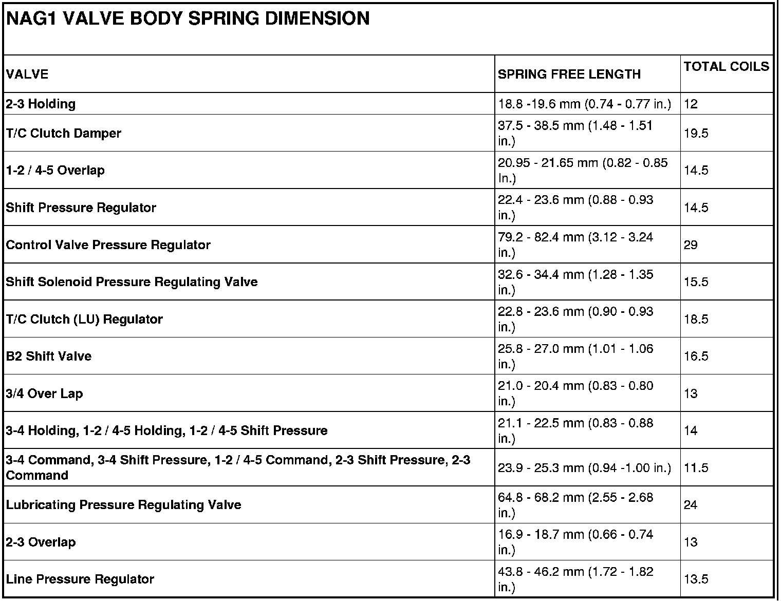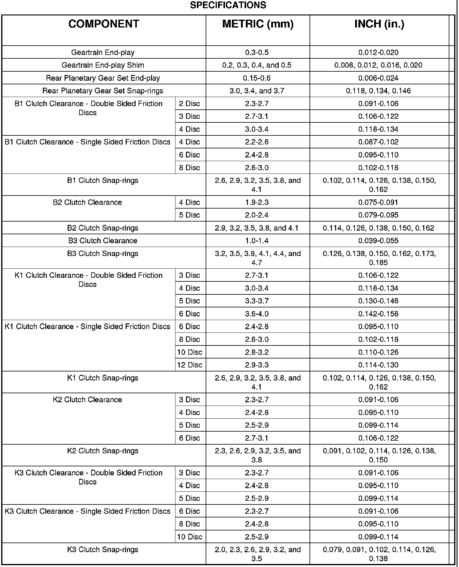 TRANSMISSION SPECIFICATIONS