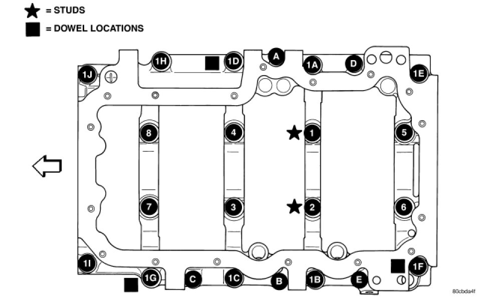 - Tighten bolts 1A - 1J to 54 Nm (40 ft. lbs.)