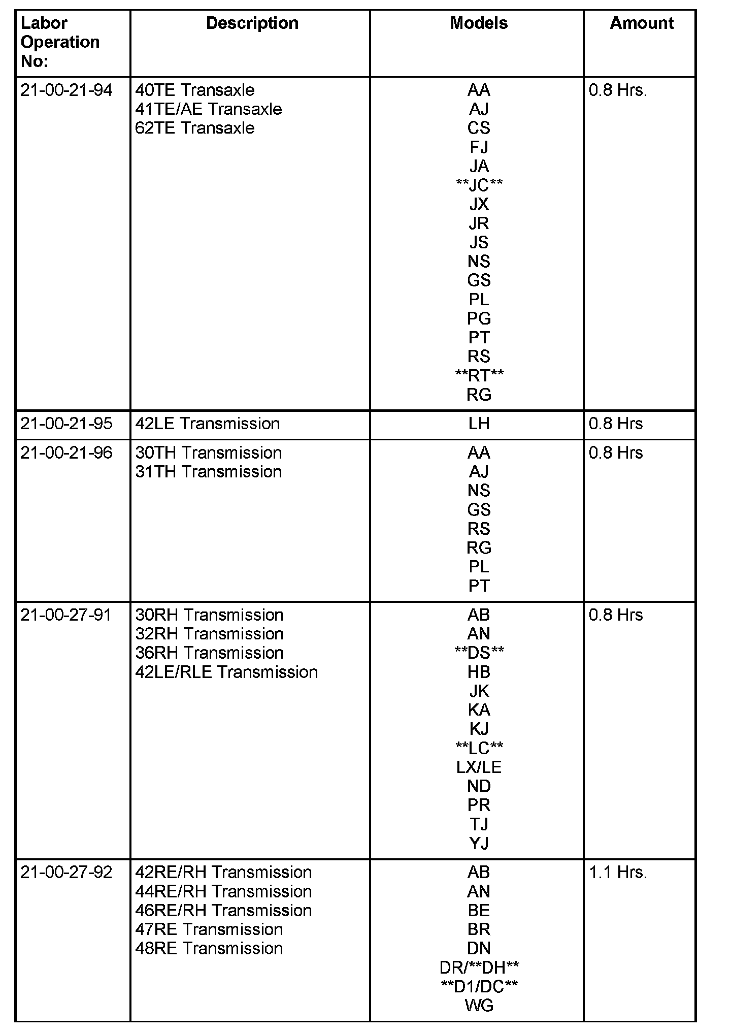 These labor operation numbers are only to be used when repair exceeds 70% of the cost of transmission assembly replacement.