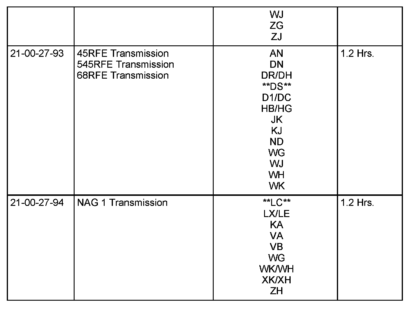 The use of a Diagnostic time allowance and/or "00" time in place of one of the below Labor Operation Numbers does not eliminate the requirement to return a properly completed Diagnostic Sheet for a transmission replacement. See Warranty Bulletin D-06-08 for additional information.