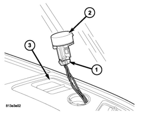 3. Align the tab on the sun sensor with the opening in the instrument panel and install the sensor onto the instrument panel. Make sure that the sensor's retaining clips located at the front of the sensor near the windshield are fully engaged to the instrument panel.