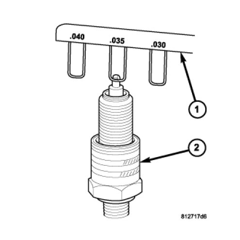 2. Check and adjust spark plug gap with a gap gauging tool (1). Refer to the Spark Plug Specifications for plug gap. Two different gaps are used.