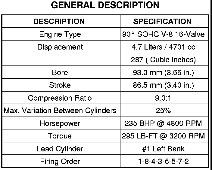 Home >> Jeep >> 2008 >> Commander 2WD V8-4.7L >> Repair and Diagnosis >> Specifications >> Mechanical Specifications >> Engine >> Cylinder Block Assembly >> System Specifications