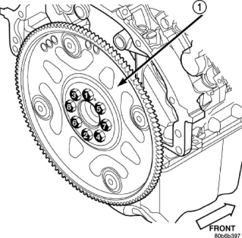 2. Tighten the flexplate retaining bolts to 60 Nm (45 ft. lbs.) in the sequence shown.