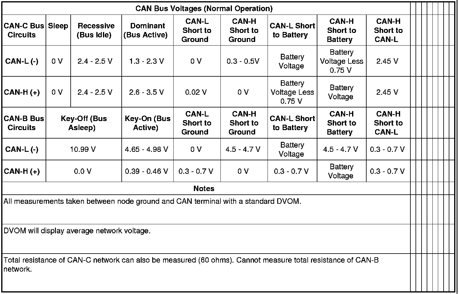 NOTE: Termination resistance of a CAN-B node cannot be verified with a Digital Multi-Meter (DMM) or Digital Volt-Ohm Meter (DVOM). The transceiver of each CAN-B node connects to termination resistors internally. When the vehicle battery is disconnected, the internal connections of all CAN-B node transceivers are switched open, disconnecting the termination resistors. Therefore, the total bus resistance measured under these conditions will be extremely high or infinite, which does not accurately reflect the actual termination resistance of the CAN-B bus.