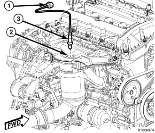 1. Install O2 sensor (3) to maniverter (2). Tighten to 41 Nm (30 ft. lbs.).