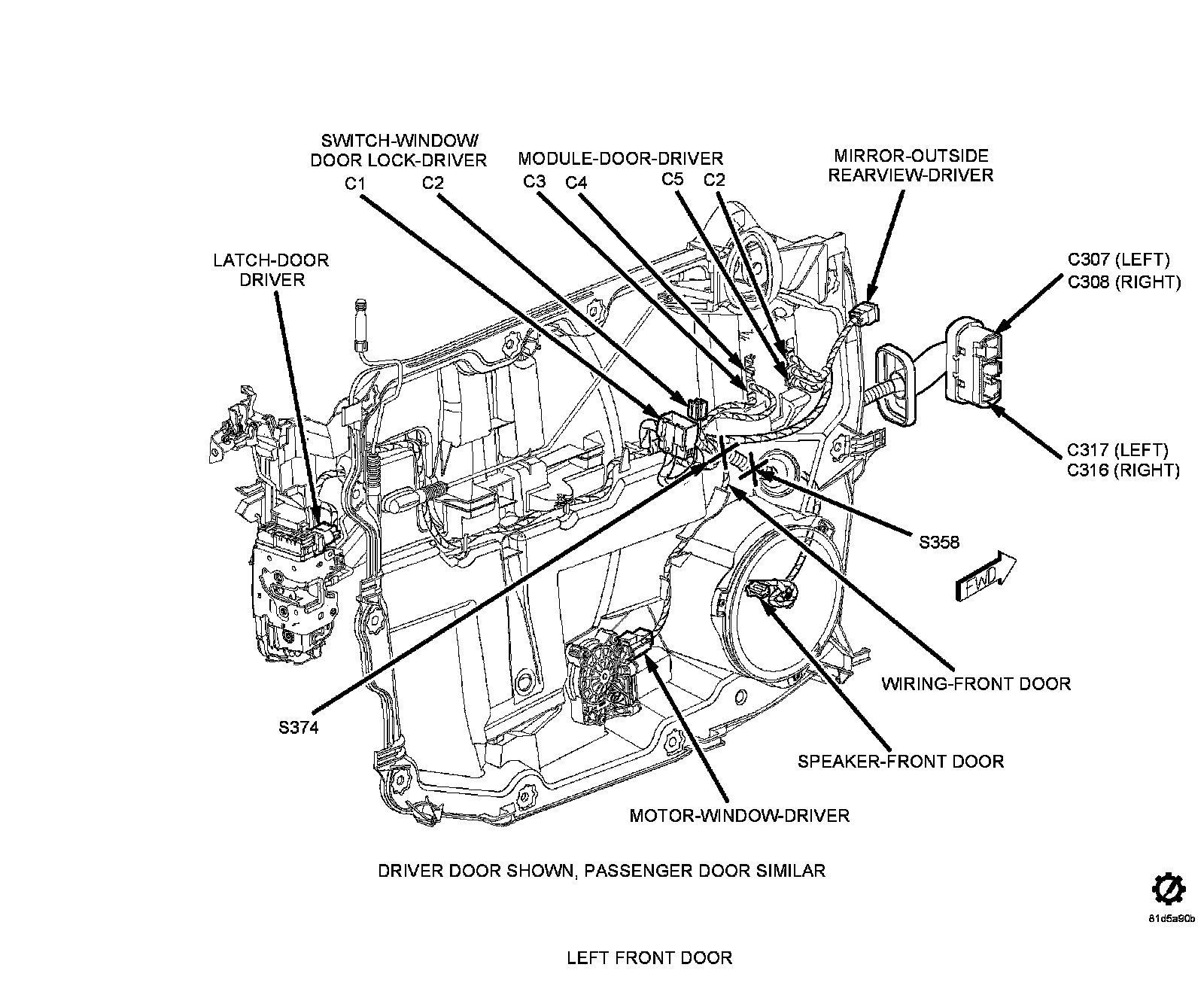 5 Q321 OR/DB LEFT FRONT WINDOW EXPRESS DOWN DRIVER