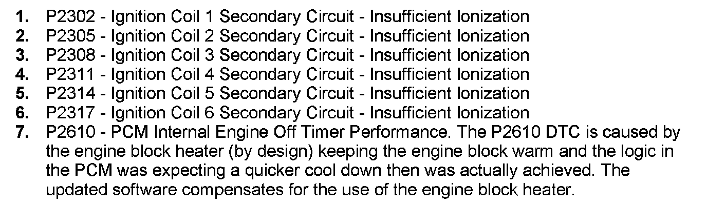 The customer may experience a MIL illumination for the Diagnostic Trouble Codes (DTC) shown.