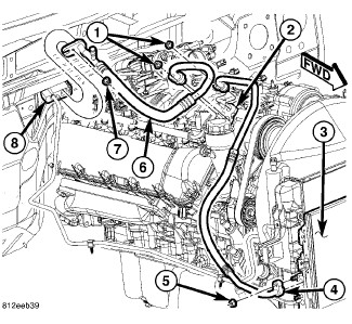 - Tighten bolt (5) to 55 Nm (41 ft. lbs.).