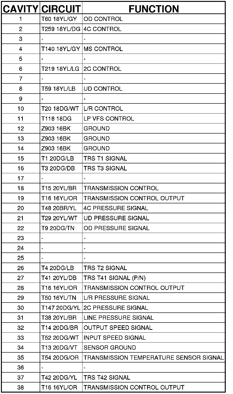 Connector C4 (RFE) - (INJECTOR) 38 WAY