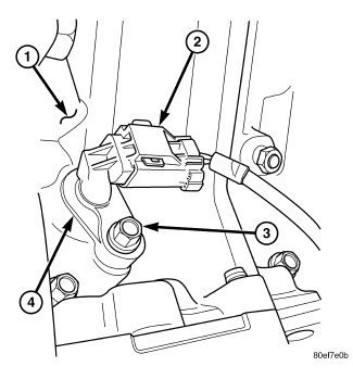 3. Install sensor (4) into engine block (1) with a slight rocking and twisting action.