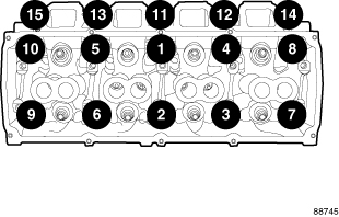 Tighten cylinder head bolts 11 through 15 34 Nm (25 ft. lbs.)