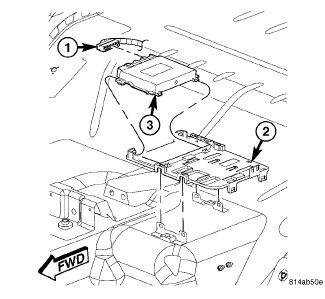4. Using a trim stick (special tool #C-4755) or equivalent, gently pry back on the retaining tabs on the mounting plate (2) and remove module.