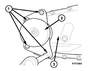 2. Remove the bolts (1) holding the damper (2) to the rear case (3).