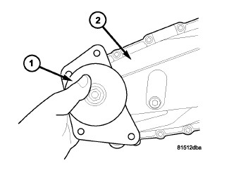 10. Install the transfer case damper (1) onto the rear case (2).