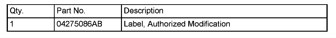 2. Type the necessary information on the "Authorized Modification Label" p/n 04275086AB and attach it near the VECI label.