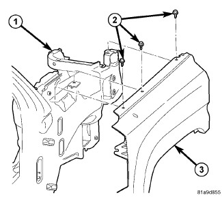 6. Install the fender to fascia fasteners (5 and 6).