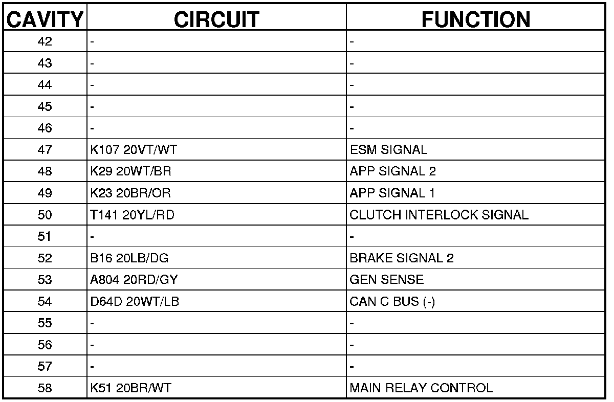 Powertrain Control Module C1 (Engine Compartment) 58 Way