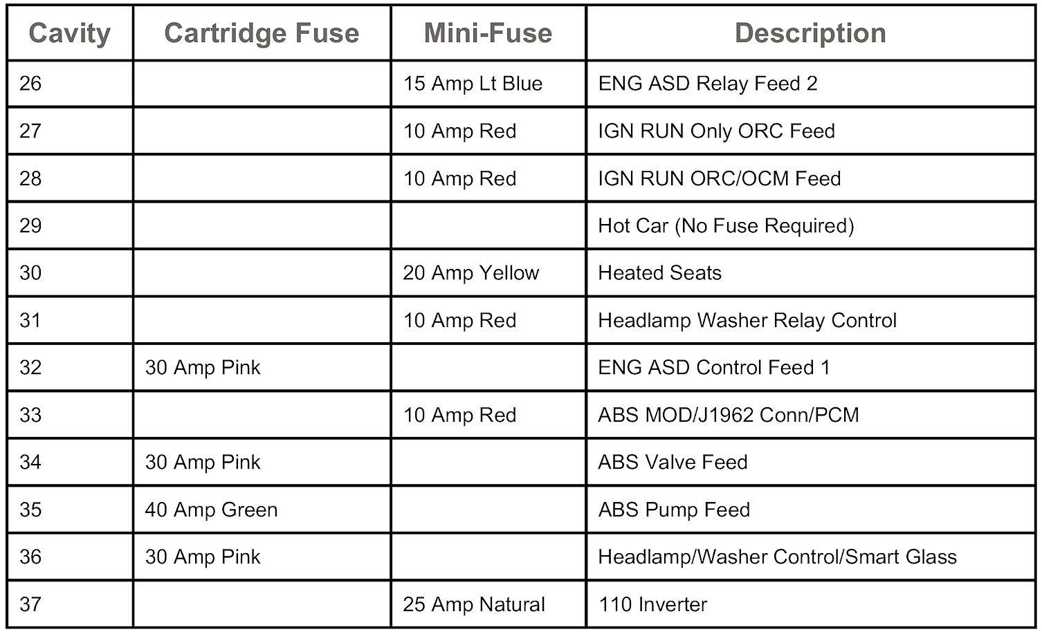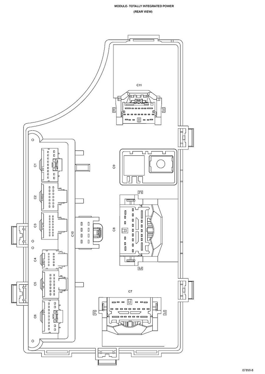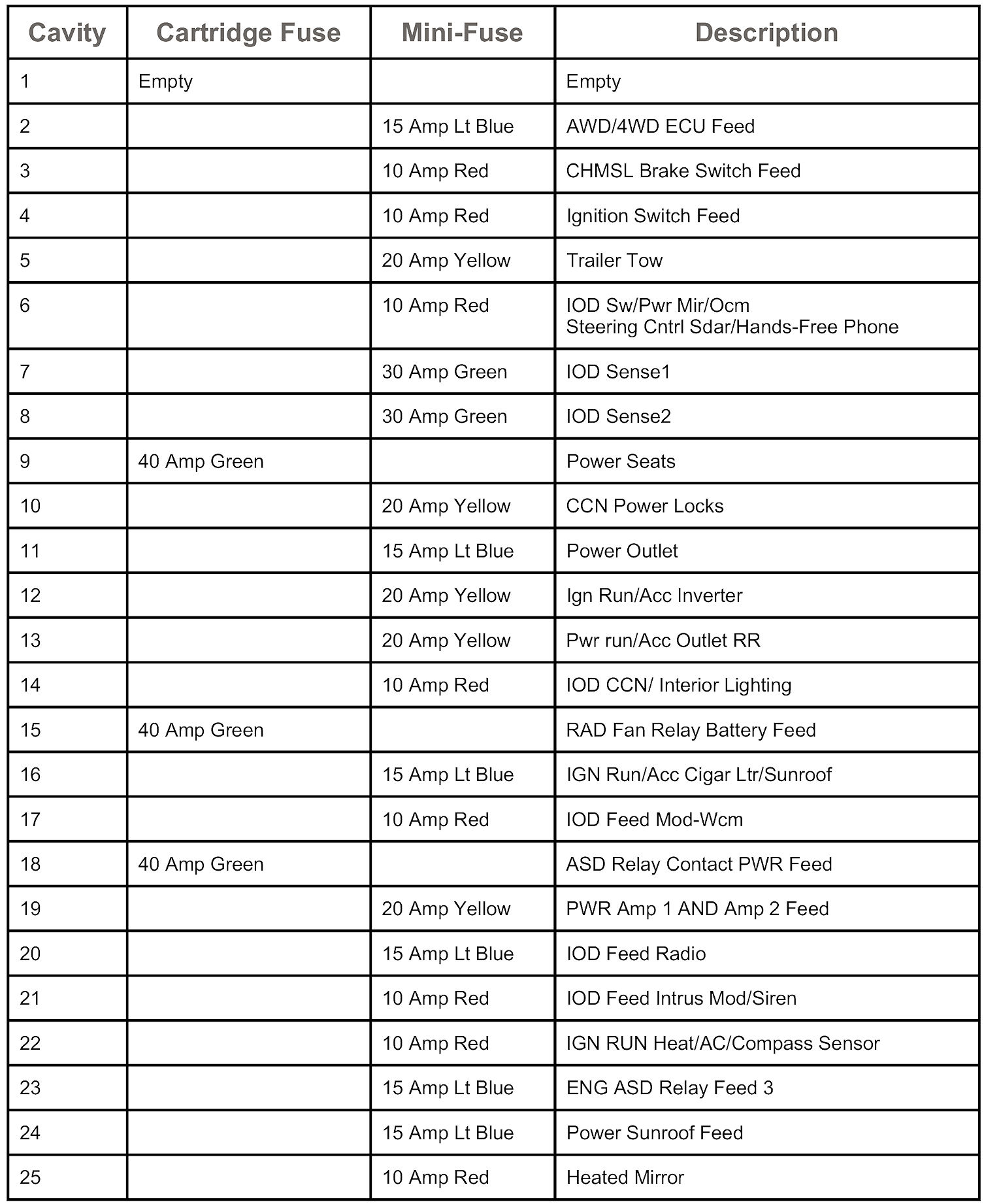 An Integrated Power Module is located in the engine compartment near the air cleaner assembly. This center contains cartridge fuses and mini fuses. A label that identifies each component may be printed on the inside of the cover.