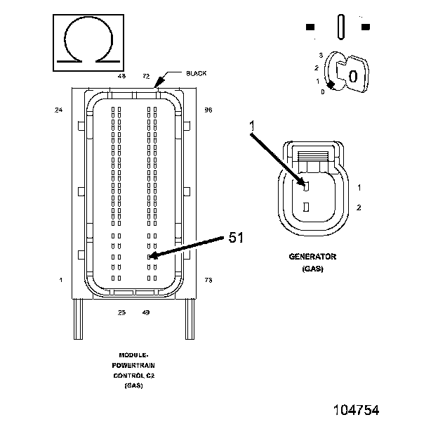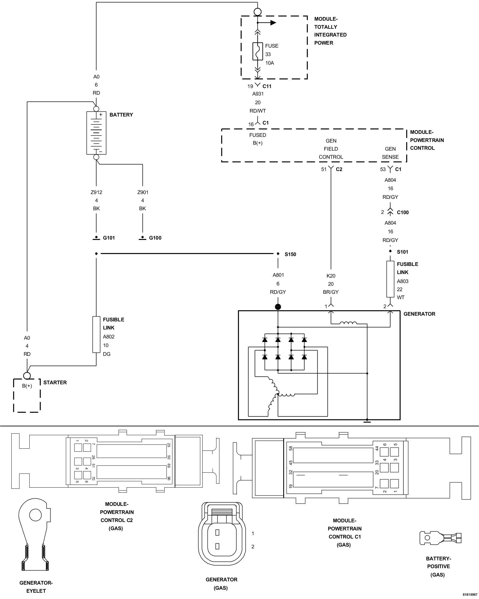 1. Using the wiring diagram/schematic as a guide, inspect the wiring and connectors between the Generator and the Powertrain Control Module (PCM).