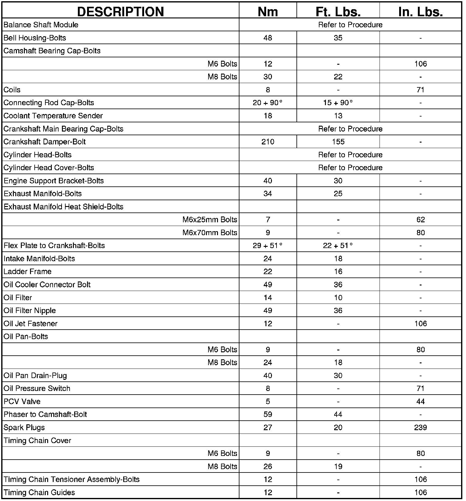 Flex Plate to Crankshaft-Bolts 29 Nm + 51° (22 ft. lbs. + 51°)