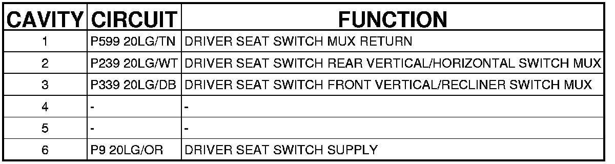 Connector C4 - (DRIVER SEAT) 6 WAY