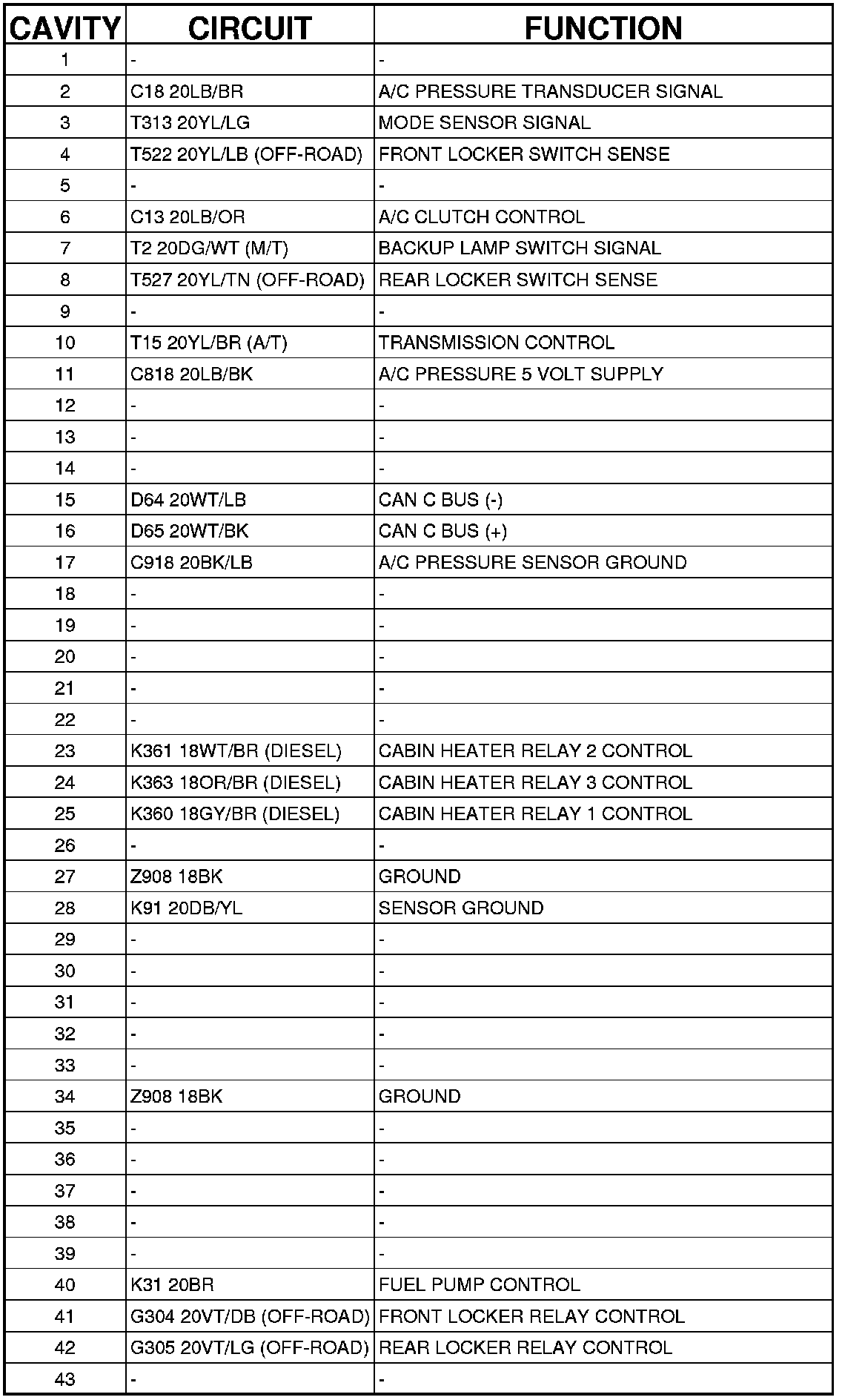 Connector C1 - (DASH) 50 WAY
