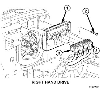The PCM (2) is located on the right side of the dash panel in the engine compartment on left hand drive vehicles. The PCM is referred to as the NGC.