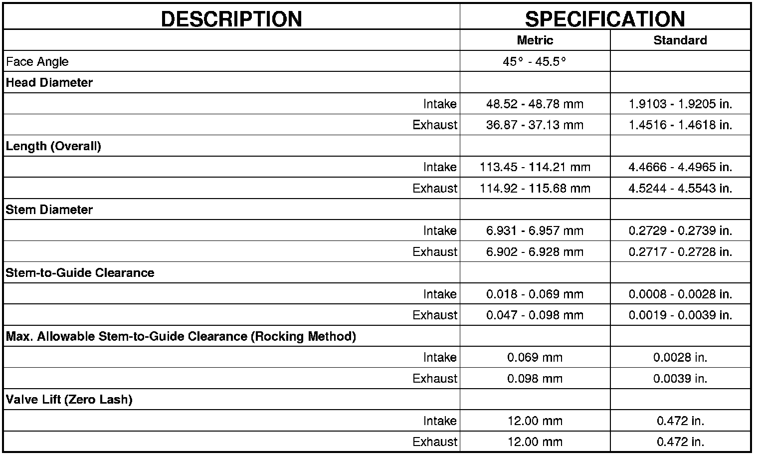 Engine Specifications