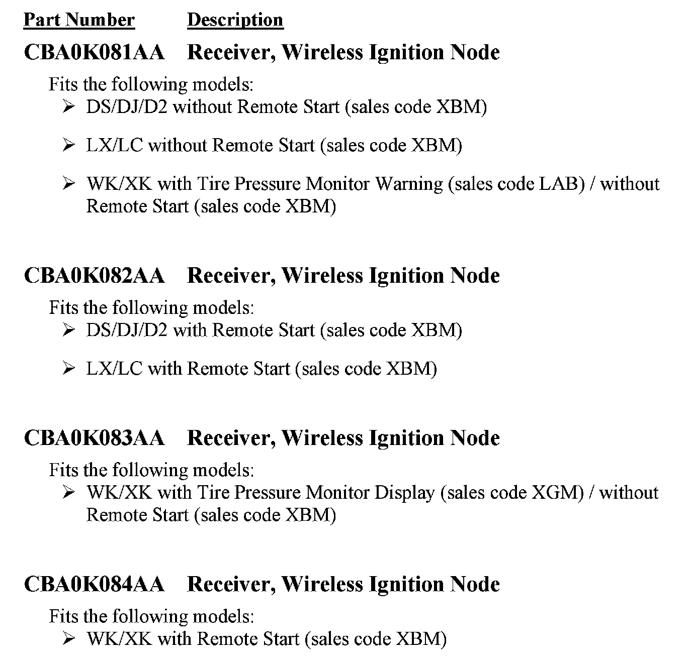 Home >> Jeep >> 2010 >> Commander 2WD V8-5.7L >> Repair and Diagnosis >> Body and Frame >> Locks >> Keyless Entry >> Keyless Starting System >> Keyless Start Transmitter >> Technical Service Bulletins >> Recalls >> Recall - Wireless Ignition Node Receiver >> Overview