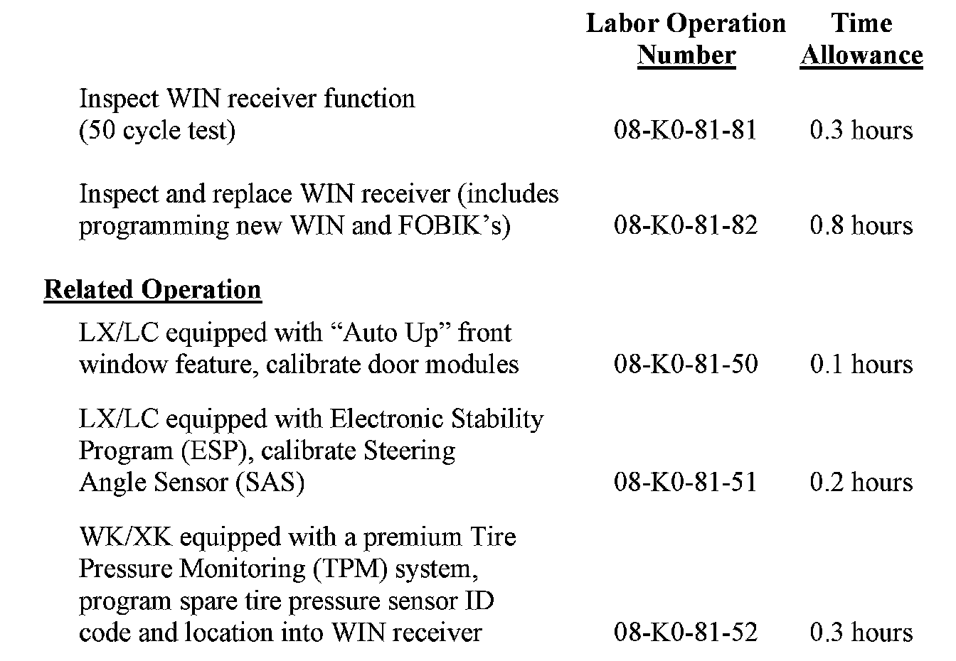 (sales code XGM) must also have the spare tire pressure sensor identification number and location programmed into the new WIN receiver.