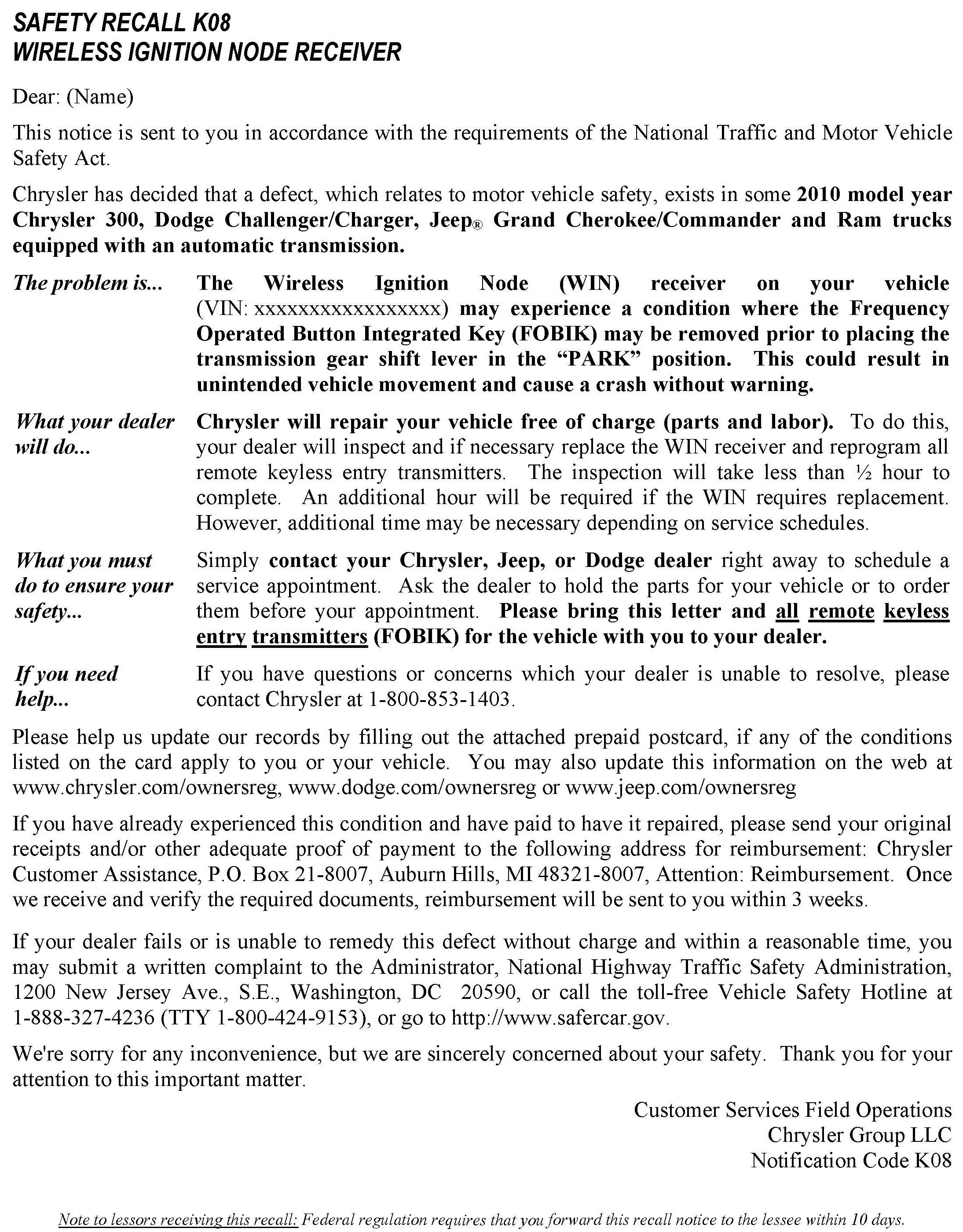 Recall - Wireless Ignition Node Receiver