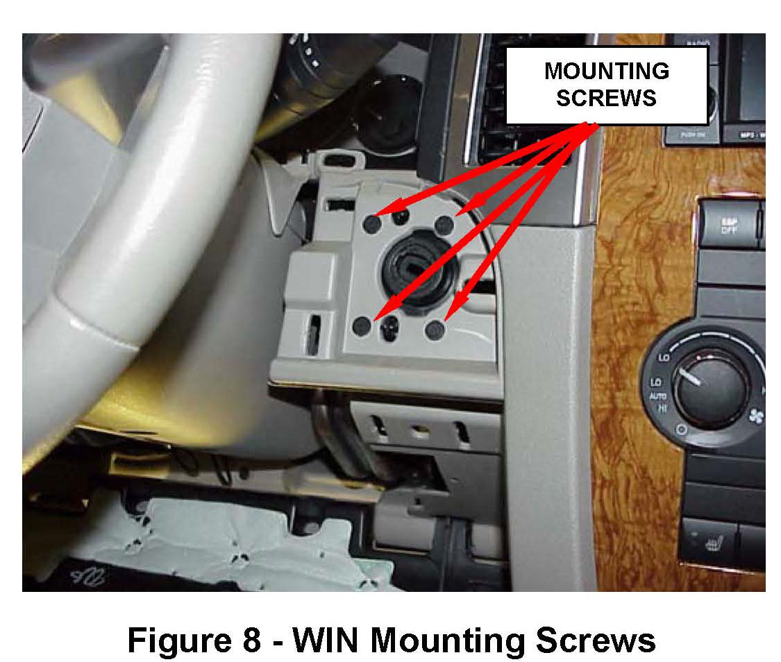 5. Remove the four WIN mounting screws that secure the WIN to the instrument panel support structure, (Figure 8).