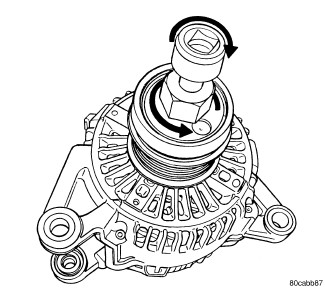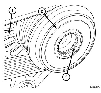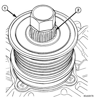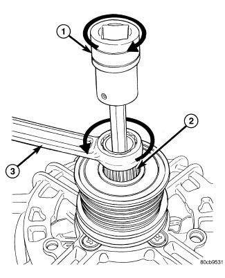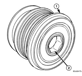 Two different type generator decoupler pulleys are used. One can be identified by the use of machined splines (3).