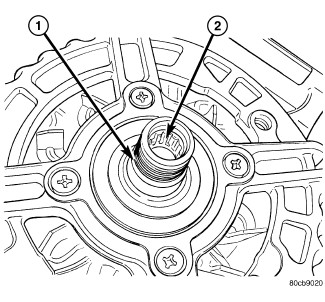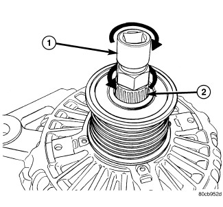 8. The generator shaft uses conventional right-hand threads to attach decoupler. To break decoupler loose from generator threads, rotate end of tool (1) clockwise or.