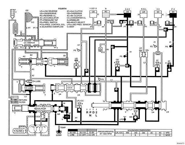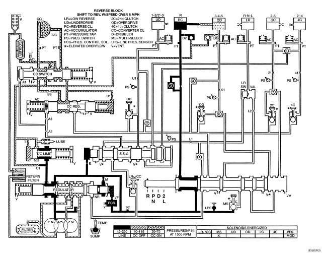 HYDRAULIC FLOW IN FIRST GEAR (FROM N OR OD)