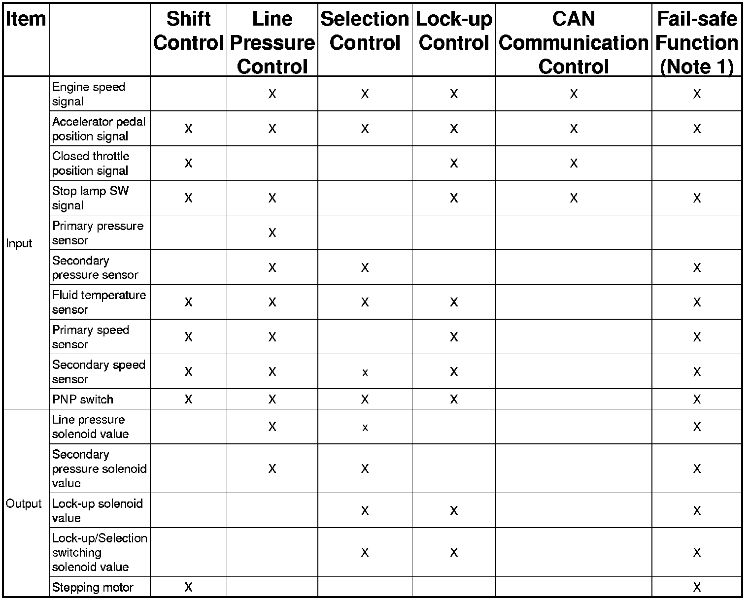 If an unexpected signal is sent from any sensor, switch, solenoid etc., this function controls the CVT to make driving as smooth as possible.