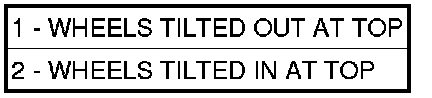 Toe-out on turns (1), sometimes referred to as Ackerman Steering, is the relative positioning of the front wheels while steering through a turn. This compensates for each front wheel's turning radius. As the vehicle encounters a turn, the outboard wheel must travel in a larger radius circle than the inboard wheel. The steering system is designed to make each wheel follow its particular radius circle. To accomplish this, the front wheels must progressively toe outward as the steering is turned from center. This eliminates tire scrubbing and undue tire wear when steering a vehicle through a turn.
