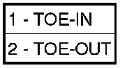 - Toe-out (2) is produced when the front edges of the wheels on the same axle are farther apart than the rear edges.